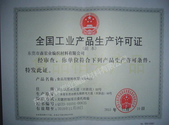 我司已获QS生产许可证