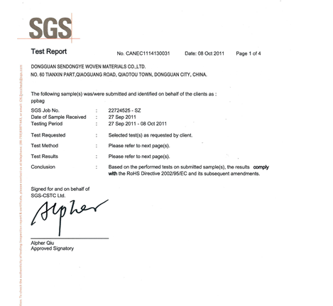 我司编织袋产品通过SGS检测报告